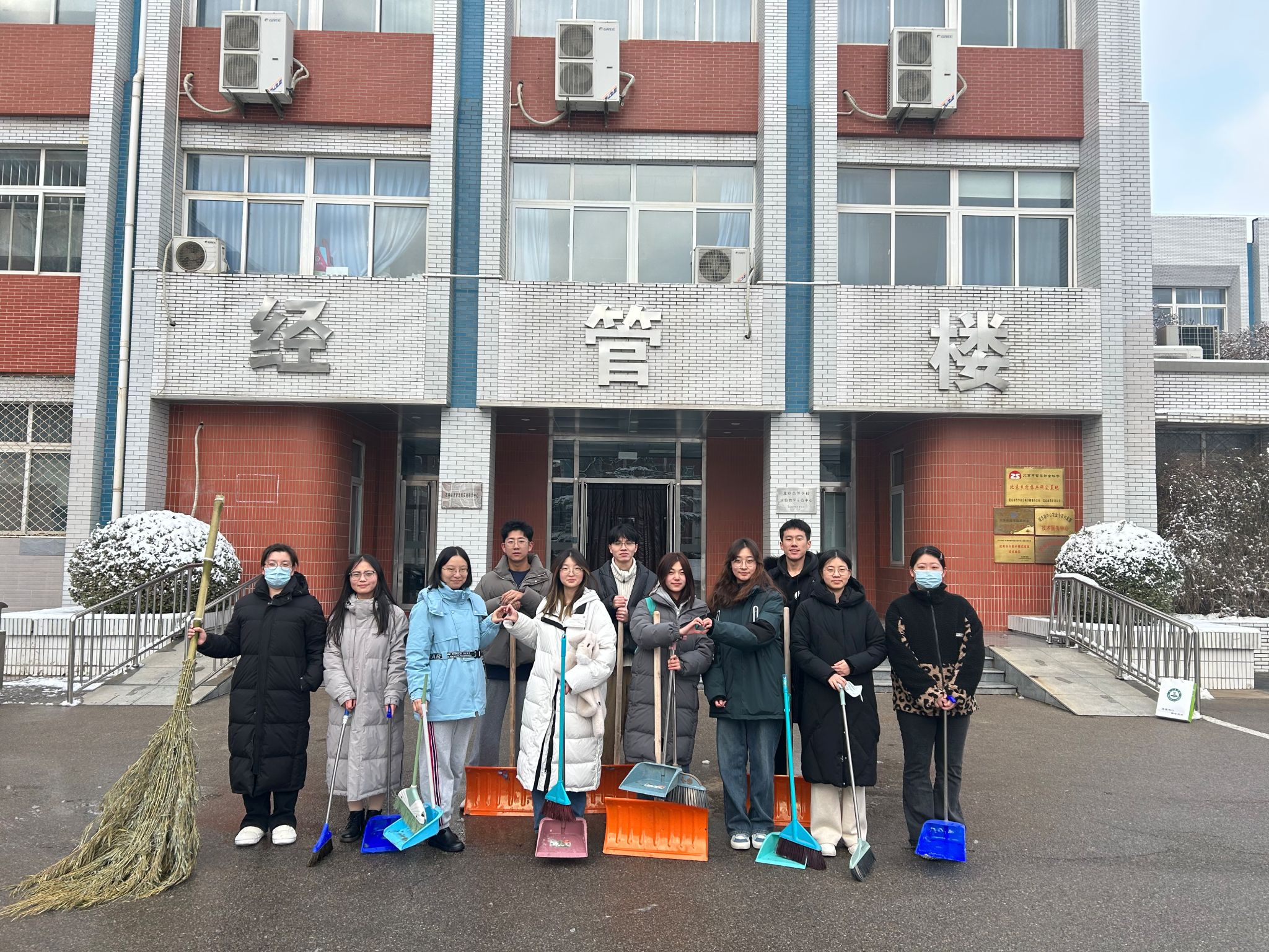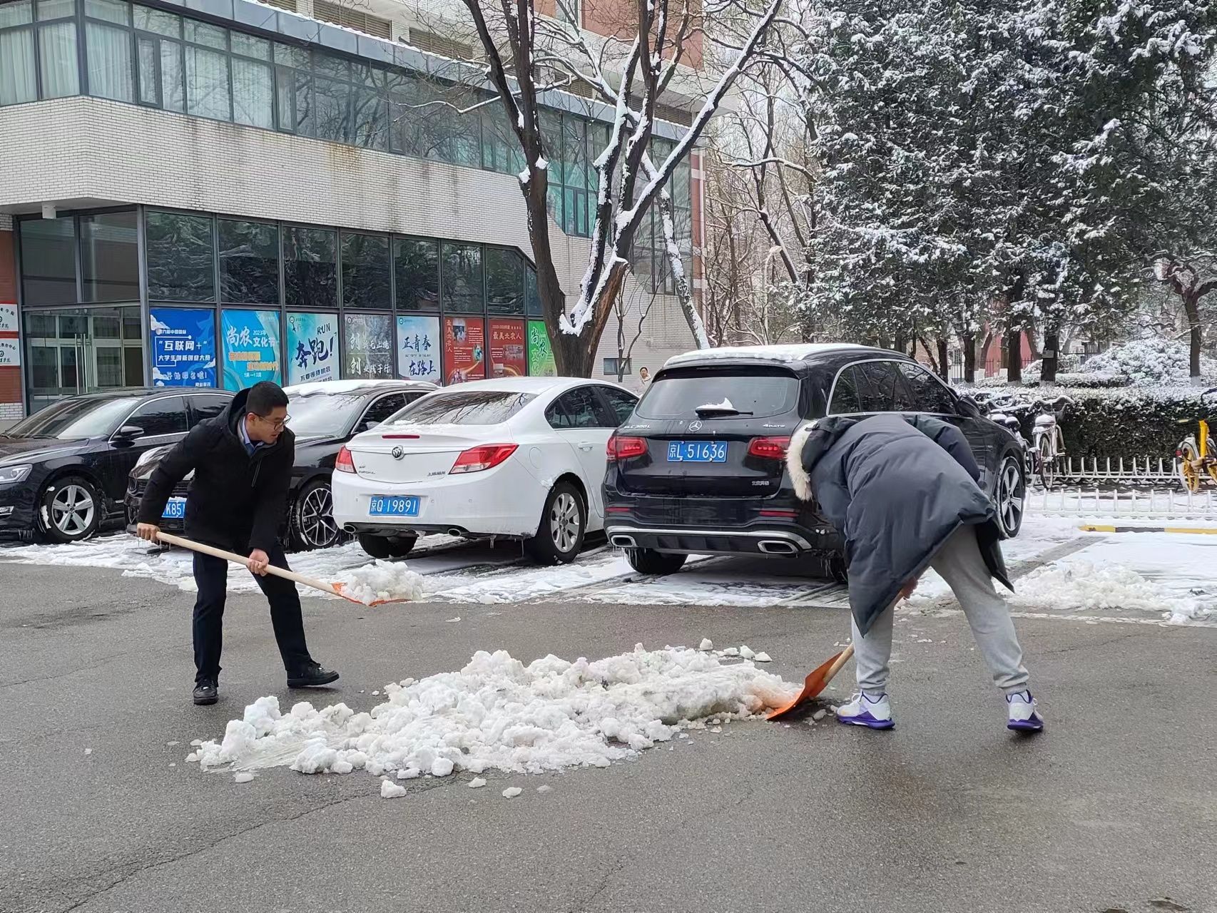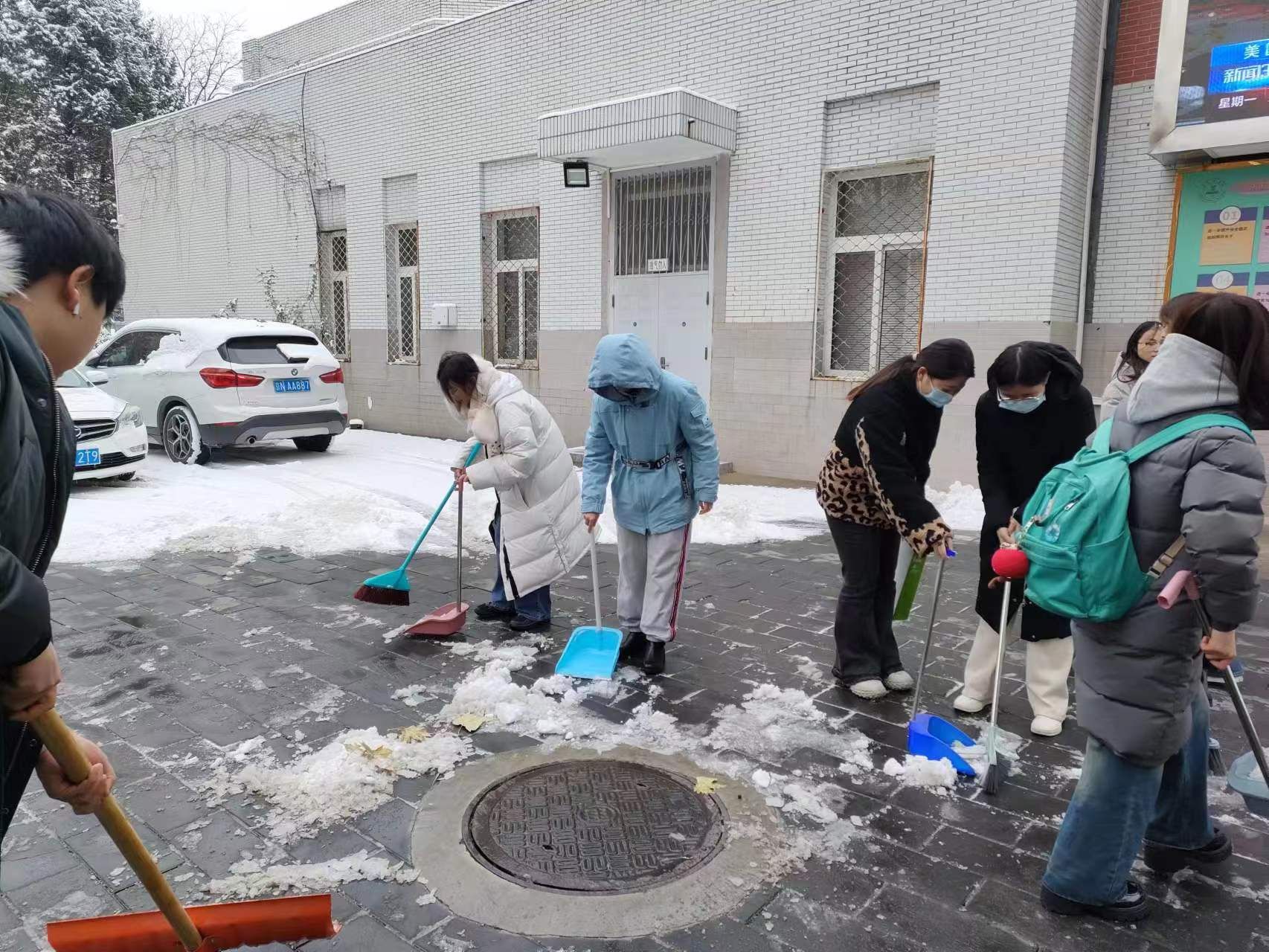 2023年冬的第一场雪如约而至,为消除融雪结冰产生的安全隐患,保障校内道路畅通。太阳成集团tyc9728教师和第63期党校高级培训班学员共计十余人投入到扫雪除冰志愿活动中,主动擦亮“志愿服务”的名片。