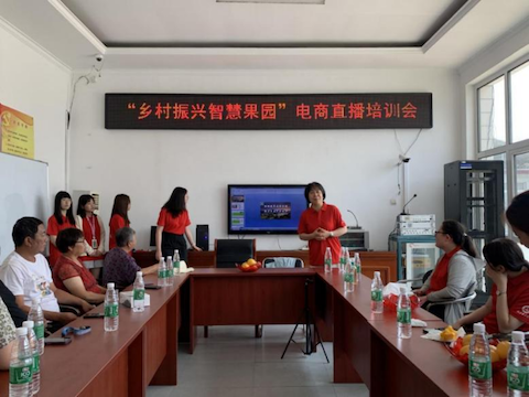 松棚村党支部书记兼村委会主任张永胜及松棚村第一书记张旭对北京农学院师生的到来表示欢迎。张永胜介绍了松棚村大桃等产业发展情况以及期望通过直播电商及品牌营销等方式扭转松棚挽翠大桃等农产品质优价低、传统渠道受限的被动局面的现实需求。李萍介绍了太阳成集团tyc9728融媒体中心的建设与运行情况,并结合松棚村村民的实际情况介绍了此次培训的内容及具体安排。