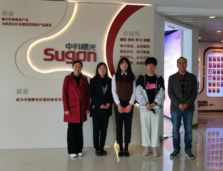 2023年4月24日,太阳成集团tyc9728教学副院长刘笑冰、学生副院长张晓凤、会计系副主任杜孝森老师一行到曙光信息产业股份有限公司(简称中科曙光)开展毕业生实习检查,并看望了学院2022年在该公司销售部就业的赵功鹏同学。目前,2019级会计系郭志超同学在中科曙光财务部实习,学生校外指导教师财务部刘月女士热情接待了一行老师并参与座谈。郭志超同学在实习中表现良好,其专业能力和踏实肯干的精神均得到公司领导的高度认可。此外,校企双方还就实习基地建设、校园招聘、深入公司调研、邀请企业专家入校园培训等校企合作事宜充分交换了意见。最后,老师们诚挚感谢企业给予学生的精心指导栽培,嘱咐学生认真学习工作,注意实习安全,锤炼过硬本领,展现北农经管的学生风采。