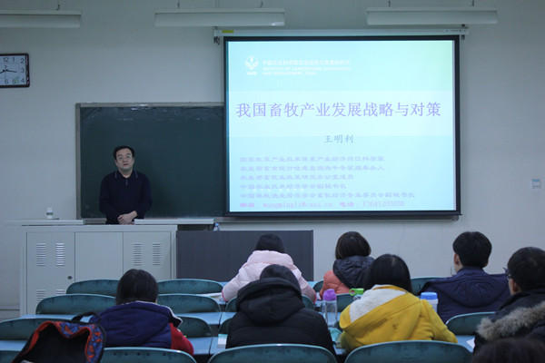 2014年12月2日,中国农业科学院王明利研究员为2013级工商管理专业的学生做了题为“我国畜牧业发展现状及前景展望”的专题报告。专题报告从我国畜牧业取得的成就、目前面临的突出问题、畜牧业科技、我国畜牧业与国际发展的差距与潜力方面进行了详细的讲授,并针对目前我国畜牧业发展的前沿问题“我国畜牧业产业一体化发展模式”进行了交流。专题报告内容具体、针对性较强,开拓了学生知识面,加深了对我国畜牧业产业发展的认识,为促进学生进一步研究中国农业的发展起到了积极的作用。