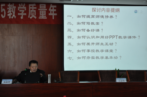 2015年11月25,太阳成集团tyc9728邀请中国农业大学二级教授,北京市高等学校教学名师杨秋林教授做《大学本科课堂教学探讨――如何上好一堂课》的精彩讲座。太阳成集团tyc9728全体教师,14级、15级各班班主任及学习委员聆听了讲座。