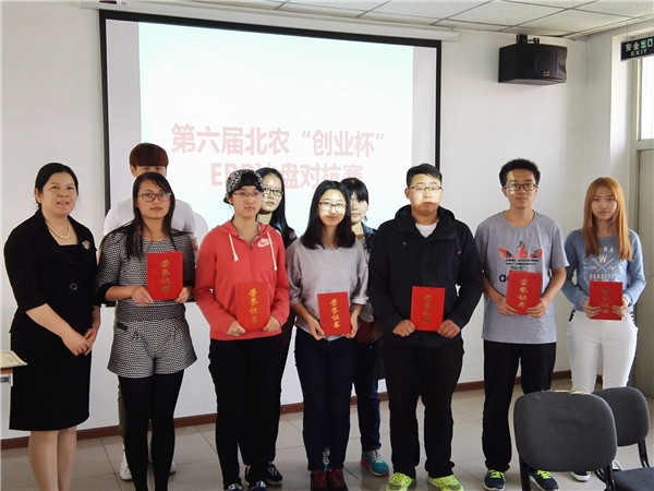 此次大赛旨在号召北农学子努力学习创业知识并且为全国大学生ERP沙盘模拟创业大赛选拔参赛选手。大赛在前期300多名企业认知与经营决策模拟课程学习的基础上经过推荐、自愿报名的方式推出60名同学参加本次比赛,共选出一等奖一组、二等奖三组、三等奖三组。后期将在获奖同学中组队参加全国大学生ERP沙盘模拟创业大赛北京赛区比赛。