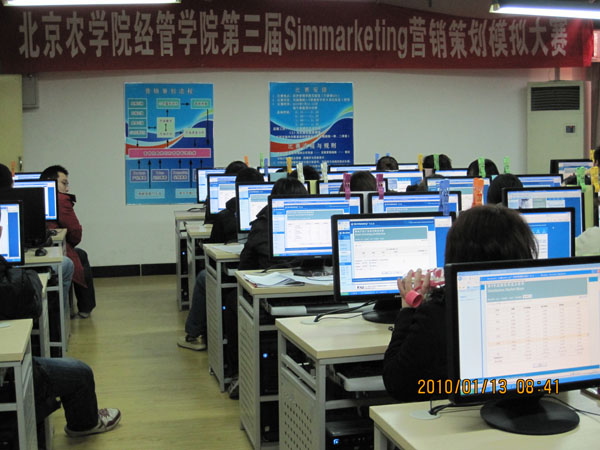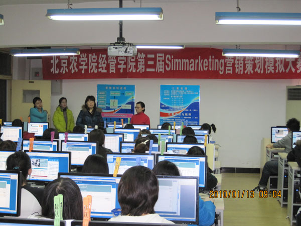 太阳成集团tyc9728市场营销专业《营销综合实训》课程以营销综合实战模拟软件Simmarketing为依托,学生经过1月4日—8日1周的营销实战模拟演练,在桂琳老师的策划下,通过指导教师们的共同商讨,制定了营销策划剧情、竞赛流程与规则,将参加实训的学生分配到6个不同市场中,使每个市场有4-6个公司小组参与营销策划竞争。由此开始组织学生针对不同营销剧情而开展营销策划实战模拟大赛。