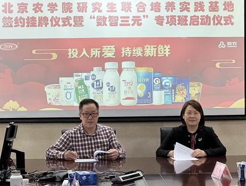 郑品石代表学校对三元食品长期以来予以学校的支持和帮助表示衷心感谢。郑品石指出,北京农学院作为市属都市农林特色高水平应用型大学,担负着服务于国家乡村振兴、农业强国和北京农业农村现代化建设的使命。三元食品是首都乳制品稳产保供的大型农业龙头企业。“数智三元”研究生专项班计划,既是北京农学院培养高水平应用型人才的创举,也是企业人才需求向高校前置化培养模式的探索。相信校企合作,将全面提升专业研究生的人才培养质量。今后,学校也将和三元食品深入探索更为有效的合作机制、多层面的产学研交流合作模式。