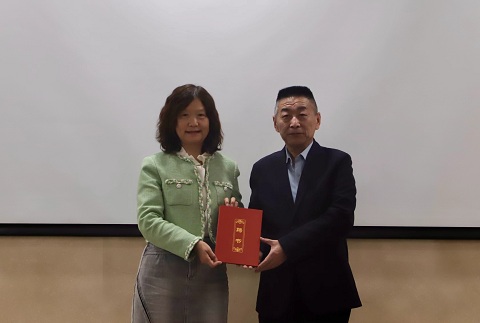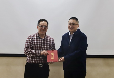 郑品石、王万山为北京农学院校外导师颁发聘书。